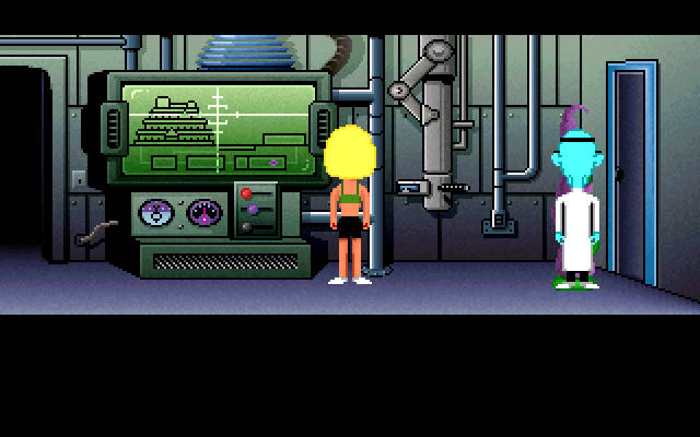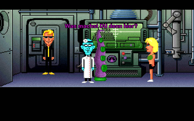 Dann hab ich Kontrolle über Sandy bekommen. Allerdings ohne Inventar, Mauscursor und 9 Verben GUI. Das Inventar und die Verben bekommt man wieder, wenn man sich von Edna schnappen lässt. Was aber nichts bringt da Sandy's Inventar komplett leer ist und man ihr auch kaum etwas geben kann. Edna setzt einen im Kerker ab und verschwindet wortlos. Den Mauscursor bekommt man trotzdem nicht wieder. Wenn man mit Sandy dann das Labor betritt, startet die Cutscene mit Sandy und danach wechselt aus irgendeinem Grund der Spielercharakter auf Doktor Fred.